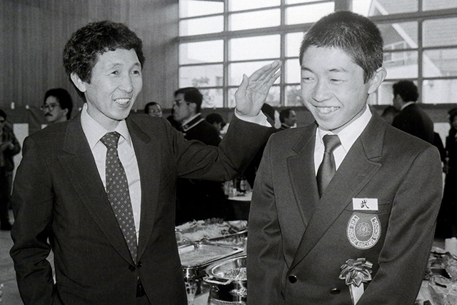 「これは僕が中学1年生の時で、横にいるのが2つ上の須貝尚介調教師です。あの頃は仲が良かったんですよ(笑)今もですけど。一緒に乗馬をやったりしていました。栗東中学は競馬関係者の子供が多かったので、みんな仲良くしていましたよ。競馬学校も3年と1年で一緒でしたね。小さい頃から騎手になりたいと言っていて、小学校5年生から本格的に乗馬を始めました。中学3年生の時に池江泰寿(調教師)さんと一緒に大会に出て僕が勝ちましたよ(笑)。須貝さんの1つ上には藤原英昭(調教師)さんとか、インティの野中賢二(調教師)さんとか、大久保龍志(調教師)さんがいました。僕が小学校5年生の時に初めて乗馬で馬に乗った時に、引っ張ってくれたのが野中賢二さんだったんです。だからインティで勝った時は、その頃の事を思い出しましたね。先日、一緒に野中さんと食事をした時にその話になって、覚えていてくれて嬉しかったですね。昔からすごく優しい人でした。」