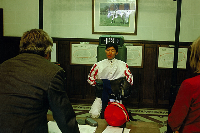 「これはフランスの競馬場になります。なぜか向こうは座って検量するんです。凄く大雑把ですよ。ここはクレールフォンテーヌという競馬場だと思いますけど、凄くアバウトですね。ペリエとか体重が重くて、この斤量をどうやって乗るのかと思っていたら、ずっと体重計を揺らしていましたよ(笑)。それでもOKです。フランスですから(笑)。逆に日本は厳しいですよ。コンマ2kgまでは大丈夫ですけれど、それを越えるとペナルティーを課せられます。