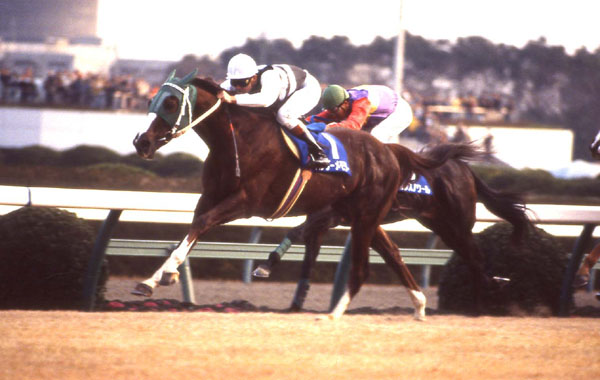 この年からG・に昇格したスプリンターズS。真のベストスプリンターを決定するこの一戦に、ユタカは'89年の安田記念馬バンブーメモリーとともに挑んだ。レースは短距離決戦らしい壮絶な先行争いで幕を開けたが、ふたりは後方集団でじっと機が熟すのを待つ。そして残り300m、ユタカとバンブーメモリーはいよいよ渾身の力を込めて追撃を開始した。粘る先行馬を次々交わしながら、後方からの追い込み馬もピシャリと封じるすばらしい勢い。先頭でゴールを決めた美しい栗毛馬は、1分07秒8の日本レコードを叩き出していた。