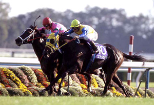 春はどうしても敵わなかったラインクラフトを前哨戦で一蹴。ユタカは大きく成長を遂げてターフに帰ってきたエアメサイアから、最後の1冠に向け明確な手ごたえを得た。それでも、ライバルとの差は僅か。届くか否か──2強対決に沸いたレースは、1度のミスも許されない緊迫感の中で展開した。ユタカはエアメサイアと呼吸を合わせて中団に構え、軽快に飛ばすラインクラフトを射程圏にロック。3コーナーからライバルが動くとすかさず応戦し、直線の攻防はローズSの再現とも言うべきマッチレースに。逃げ込みを図るラインクラフト、追い詰めるエアメサイアの2頭が他馬を見る見る引き離していく。残り200m、100mと着実に差を詰めたエアメサイアは、最後の50mでラインクラフトに馬体を併せると、ユタカの叱咤に応えてもう一伸び。春に泣かされた「あと一歩」を今度は味方につけ、クビ差で2強対決にケリをつけた。1度のミスもなく、一瞬の機を逃さない……ユタカ会心の騎乗で、2005年秋のGIロードが幕を開けた。